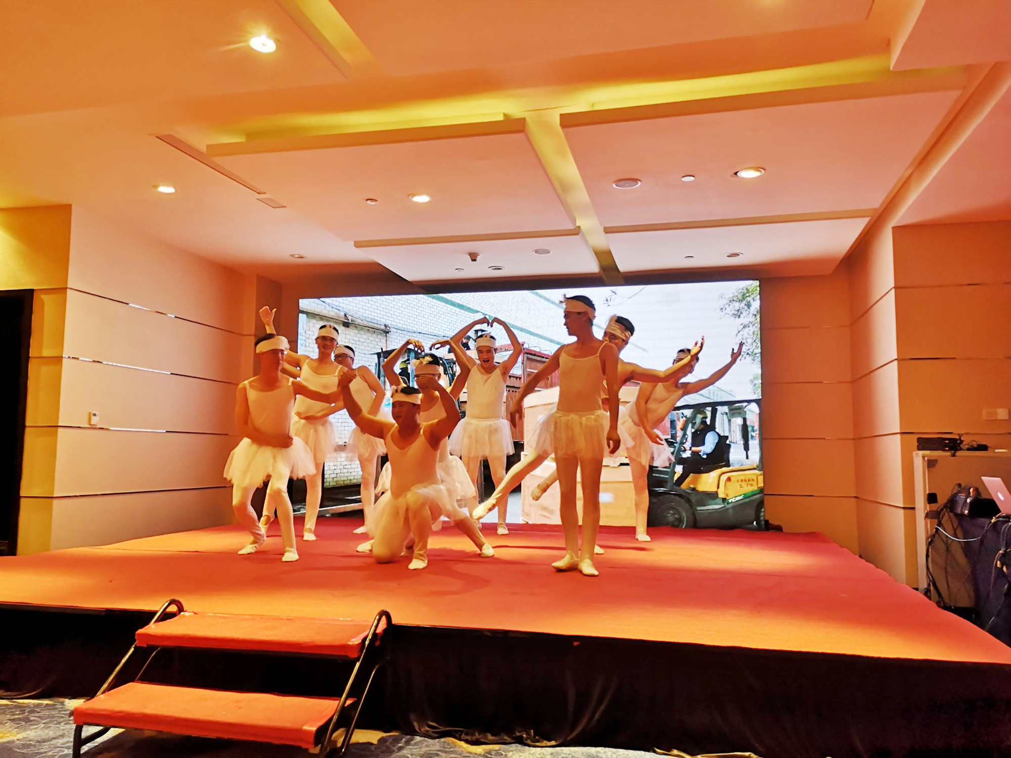 文藝表演節目中,由夏威威、劉永星等9名員工自編自導自演的《天鵝湖》,帶給我們特別的歡樂和美好的祝福;